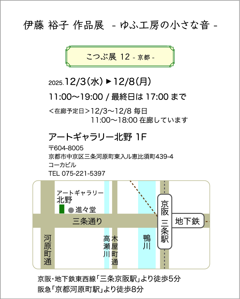 今年は、兵庫→奈良→埼玉と個展を開催して、「やっと京都に帰ってきた」という感じです。